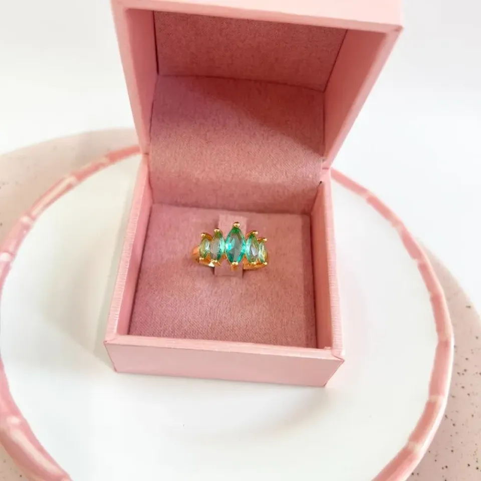 anel 5 navetes turmalina