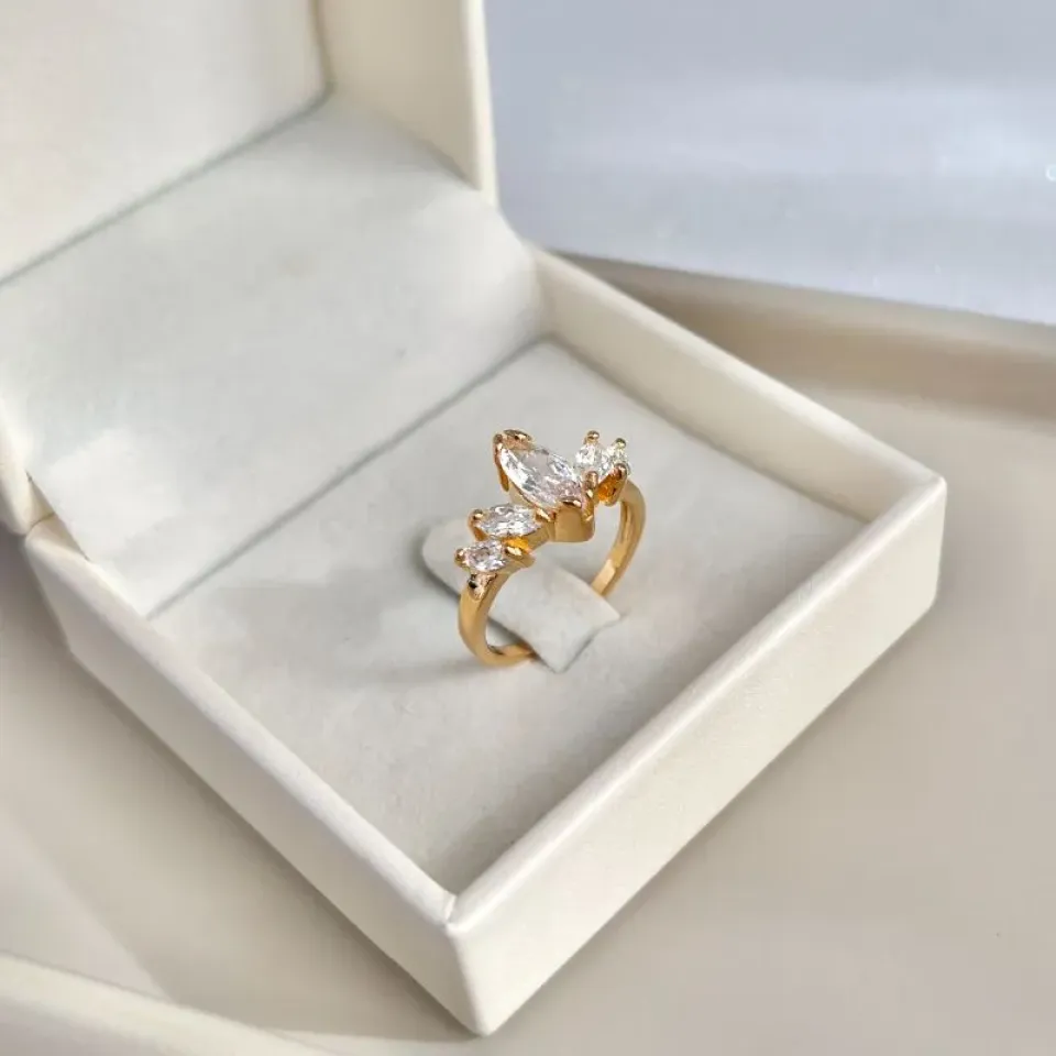 anel 5 zirconias navetes