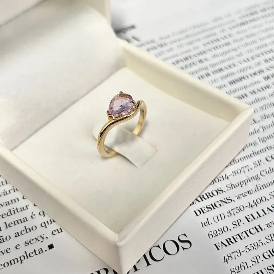 anel gota zirconia rosinha