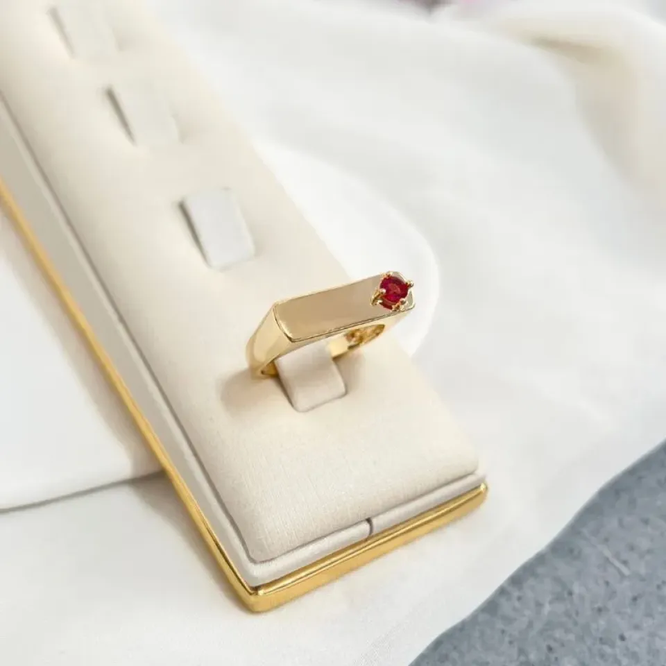 anel quadrado com pedra no canto - vermelho
