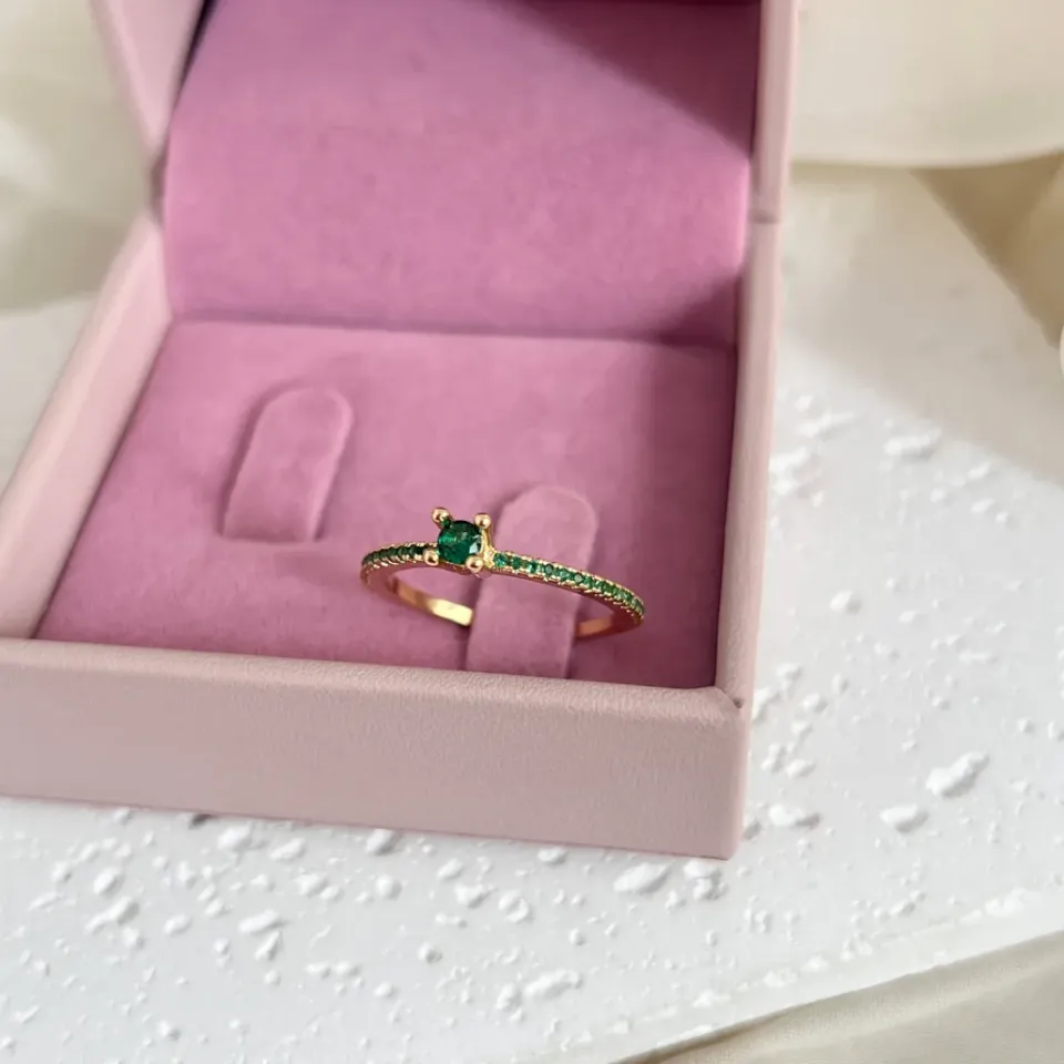 ANEL SOLITÁRIO CRAVEJADO COM ZIRCONIAS VERDE ESMERALDAConfira opiniões e avaliações de clientes!