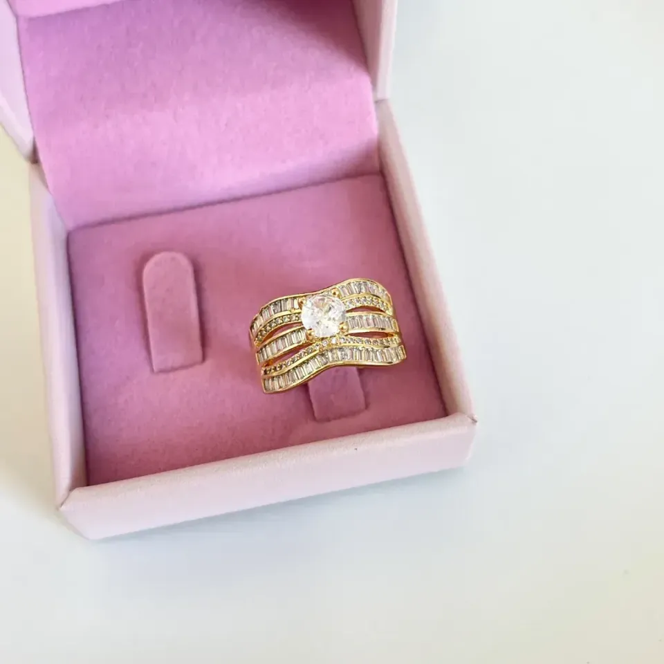ANEL SOLITÁRIO LARGO COM BAGUETESConfira opiniões e avaliações de clientes!
