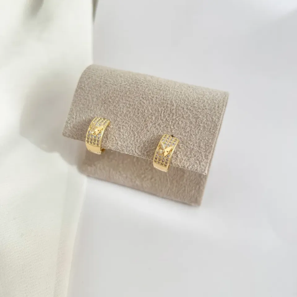 brinco argola articulada cravejada com borboleta