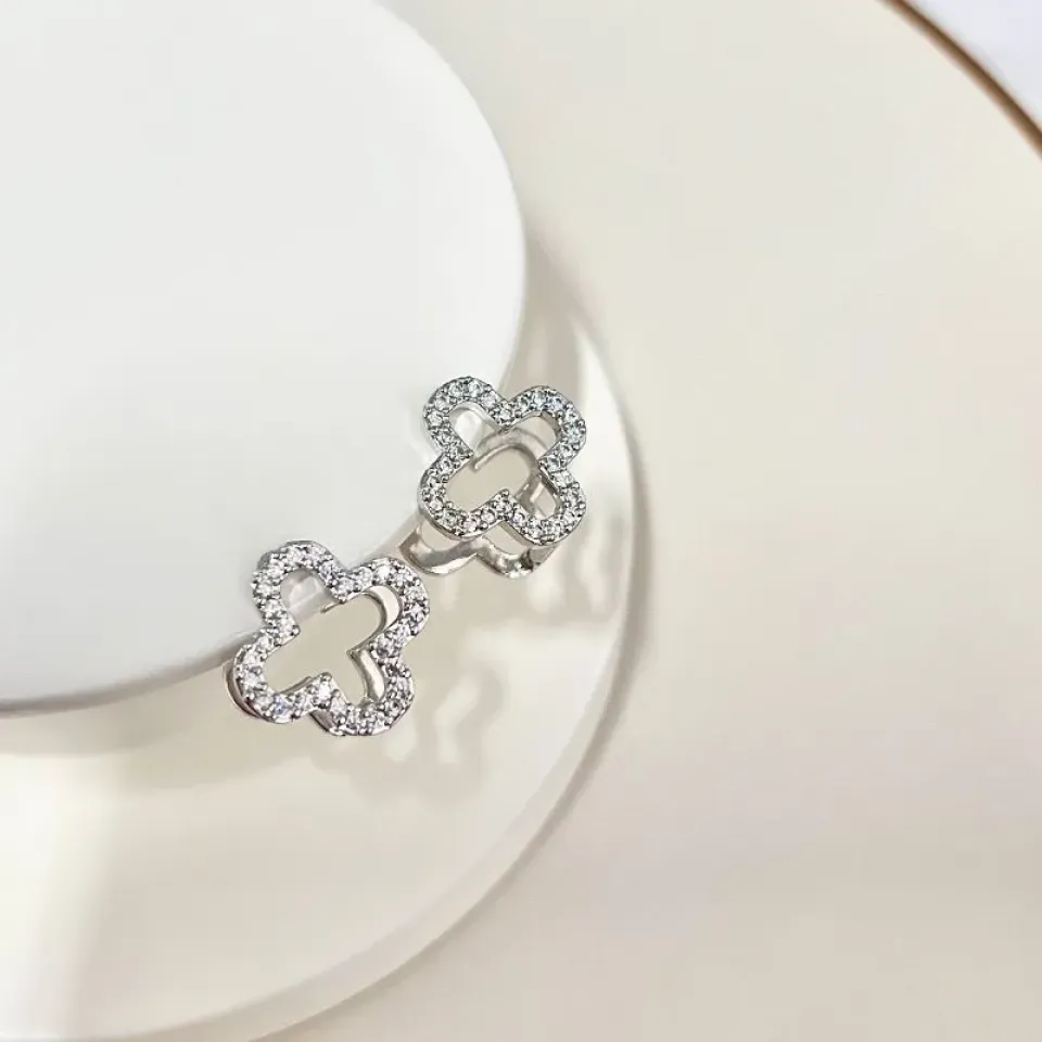 brinco argola articulada trevo vazado cravejado