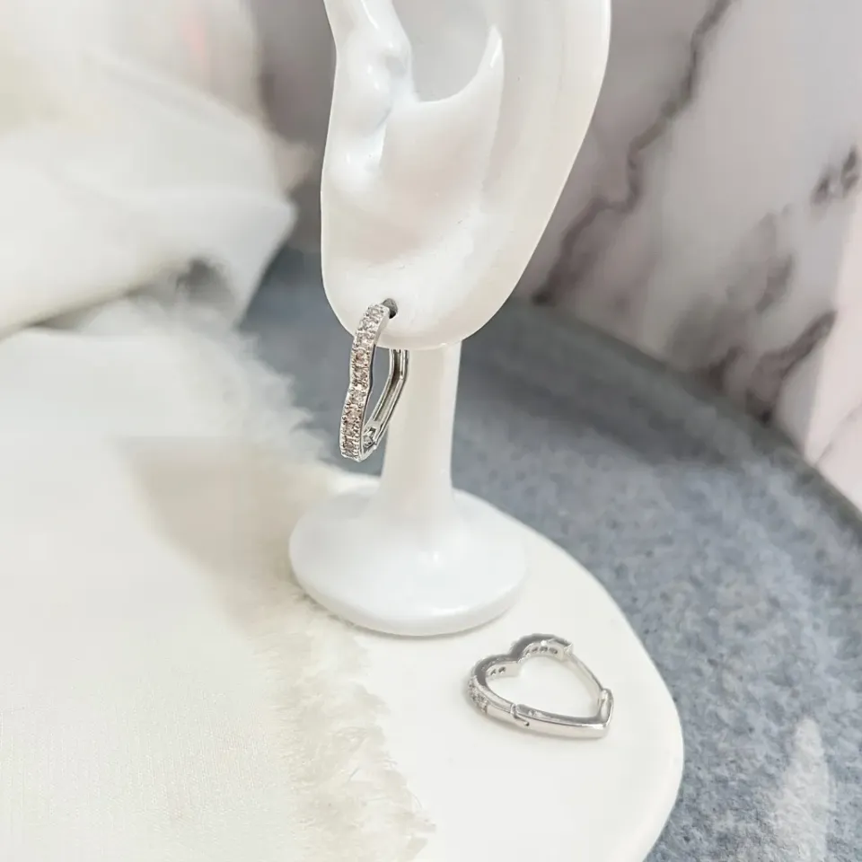 brinco argola coraÇÃo cravejado