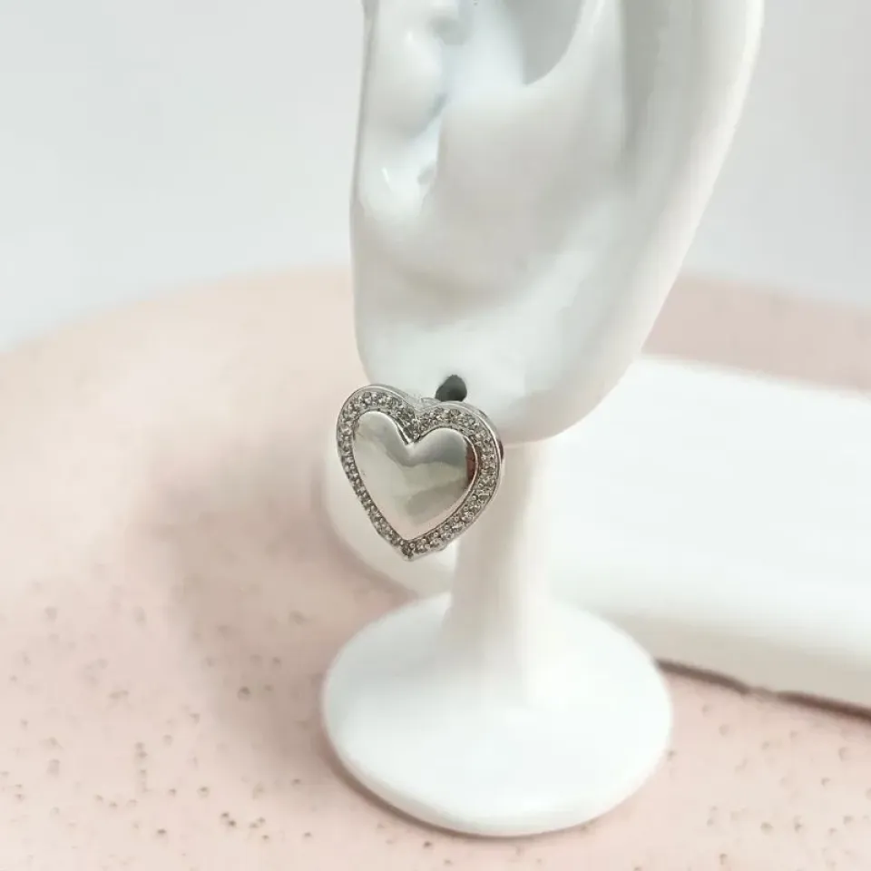 brinco argola coraÇÃo cravejado