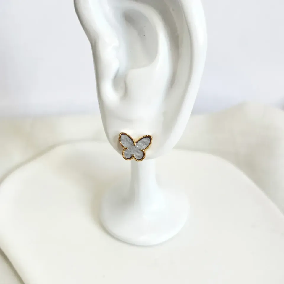 BRINCO BORBOLETA MADRE PÉROLA PRATEADAConfira opiniões e avaliações de clientes!