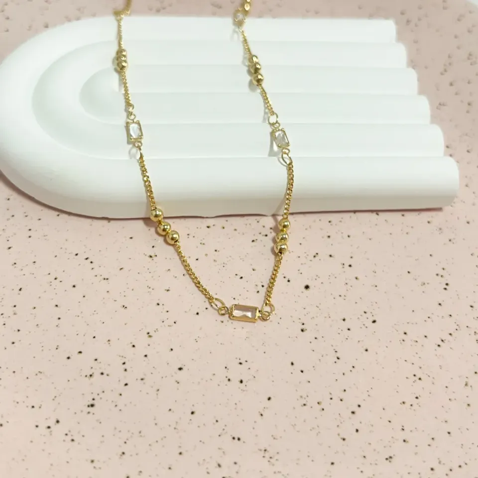 COLAR CHOKER 3 BOLINHAS E BAGUETE 40CMConfira opiniões e avaliações de clientes!
