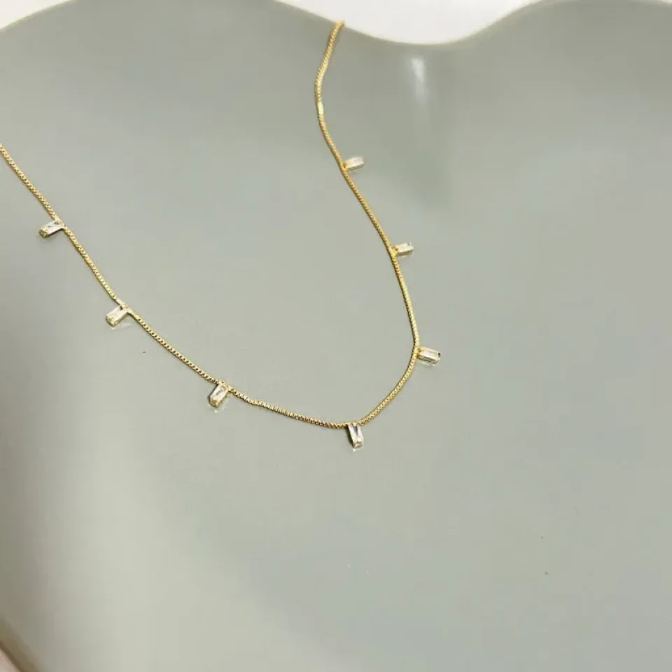 COLAR CHOKER COM 7 MINI PEDRAS BAGUETEConfira opiniões e avaliações de clientes!