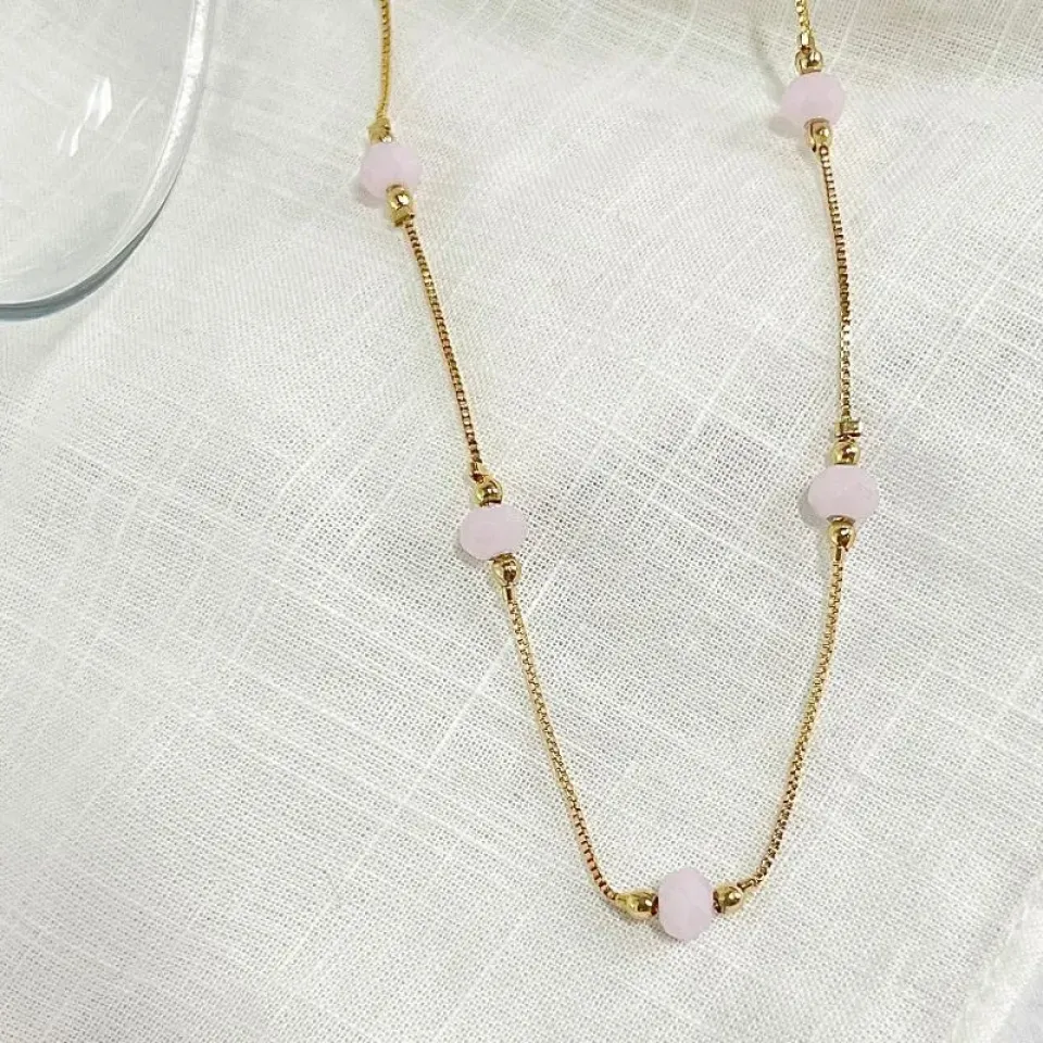 COLAR CHOKER CRISTAL QUARTZO ROSA 45CMConfira opiniões e avaliações de clientes!