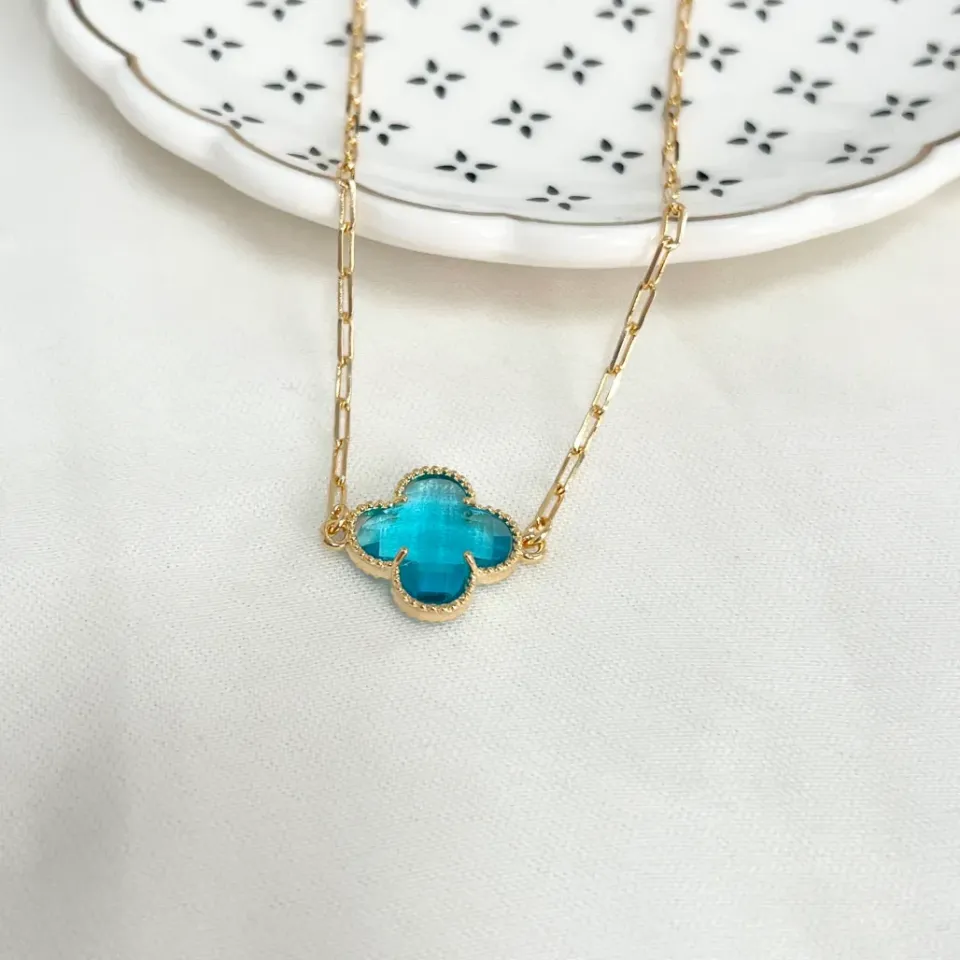 COLAR CHOKER TREVO AZUL ZIRCON 40CMConfira opiniões e avaliações de clientes!