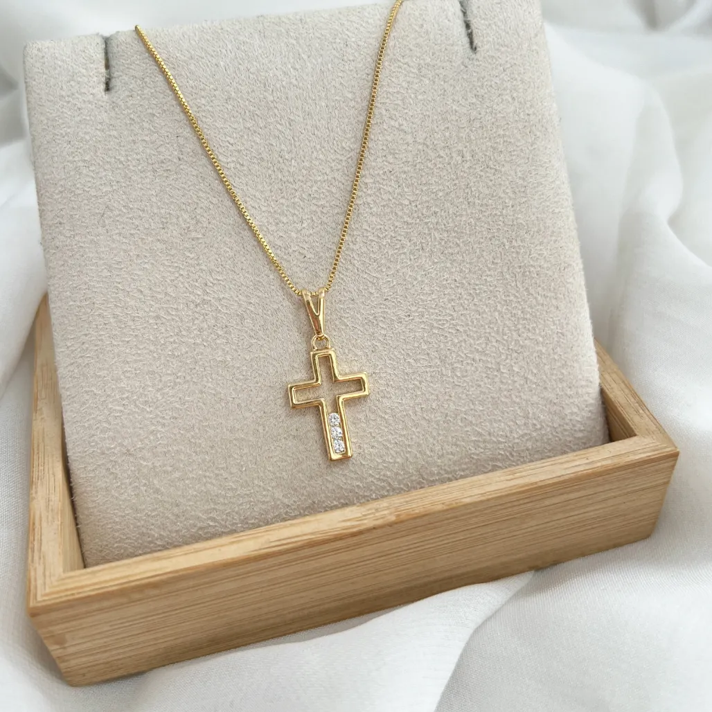 COLAR CRUZ 2CM VAZADA COM 3 ZIRCONIAS - VENEZIANA 45CMConfira opiniões e avaliações de clientes!