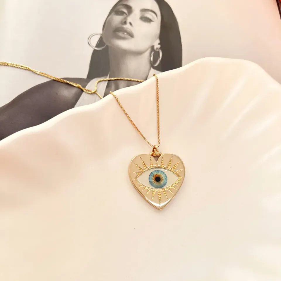 COLAR MEDALHA CORAÇÃO OLHO GREGOConfira opiniões e avaliações de clientes!