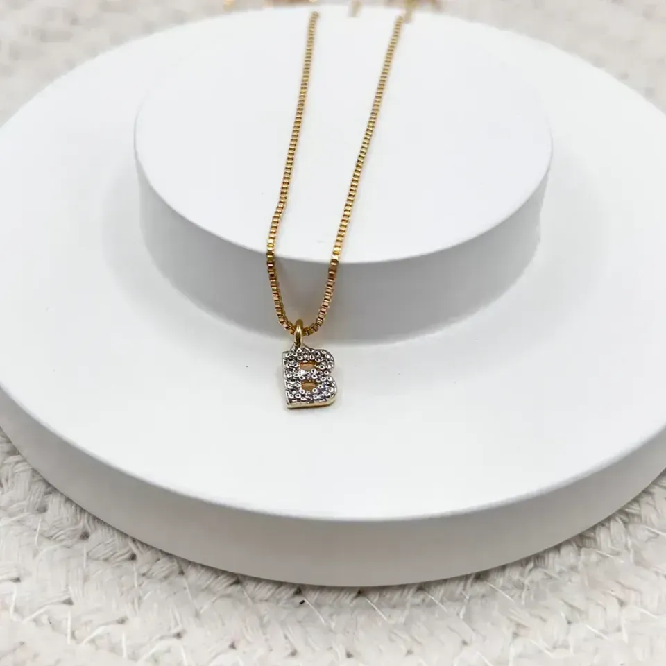 colar mini letra cravejada - b