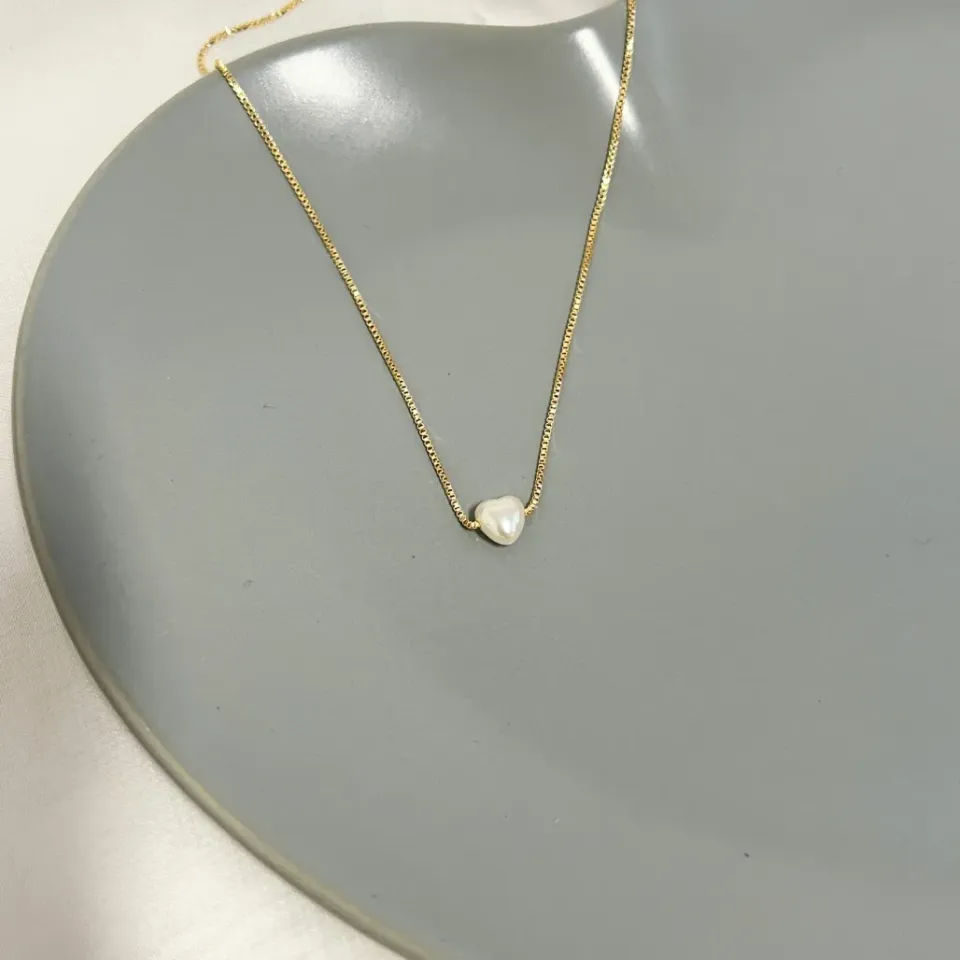colar pÉrola formato coraÇÃo 50cm