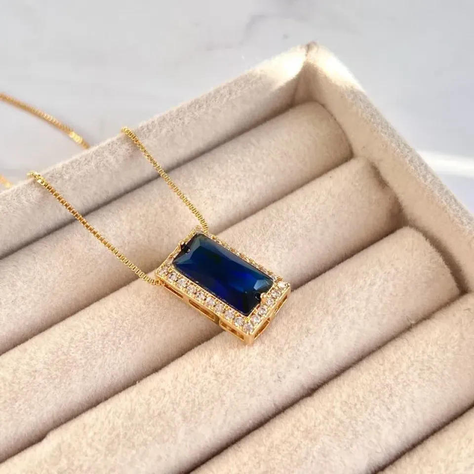 COLAR PINGENTE PRINCESA RETÂNGULAR AZUL MARINHOConfira opiniões e avaliações de clientes!
