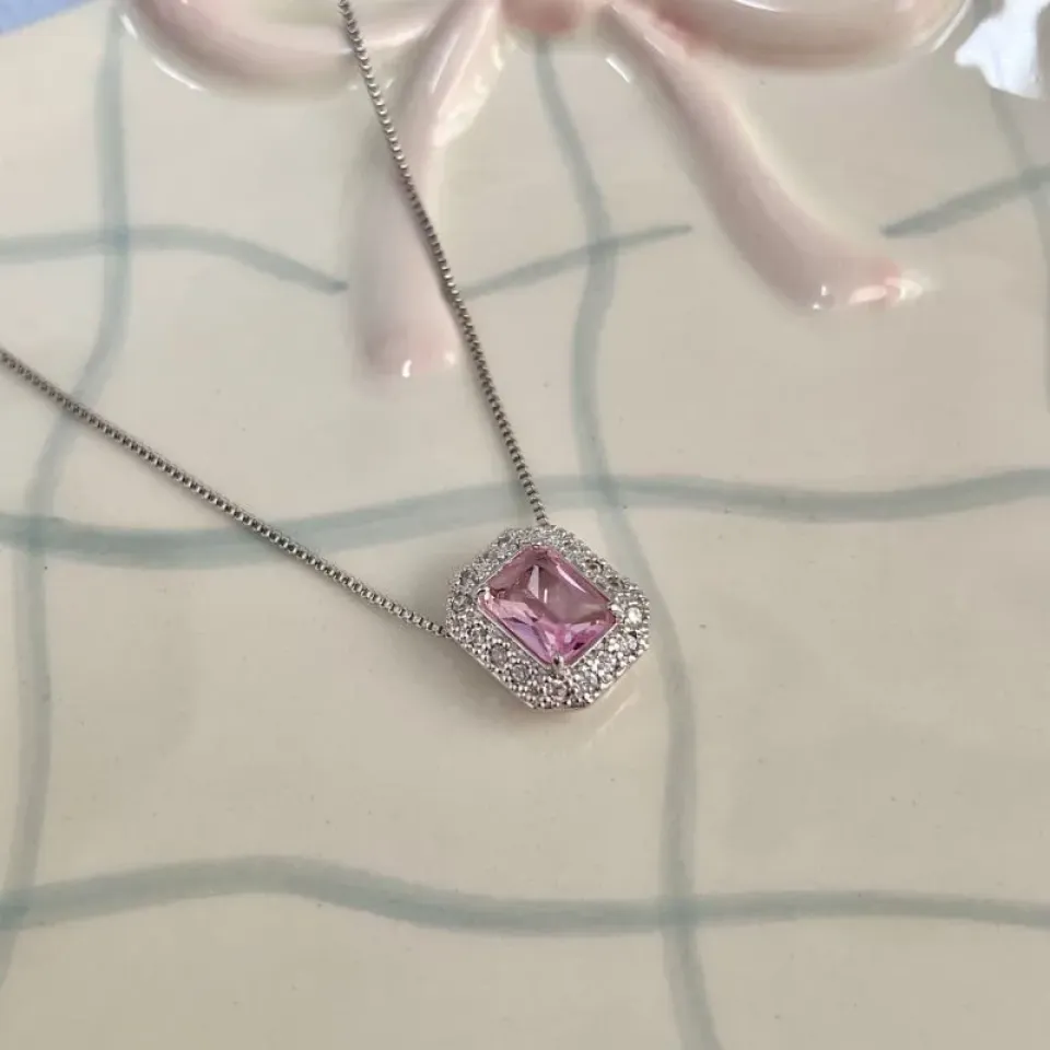 COLAR PINGENTE QUADRADO ESTILO PRINCESA PEDRA ROSAConfira opiniões e avaliações de clientes!