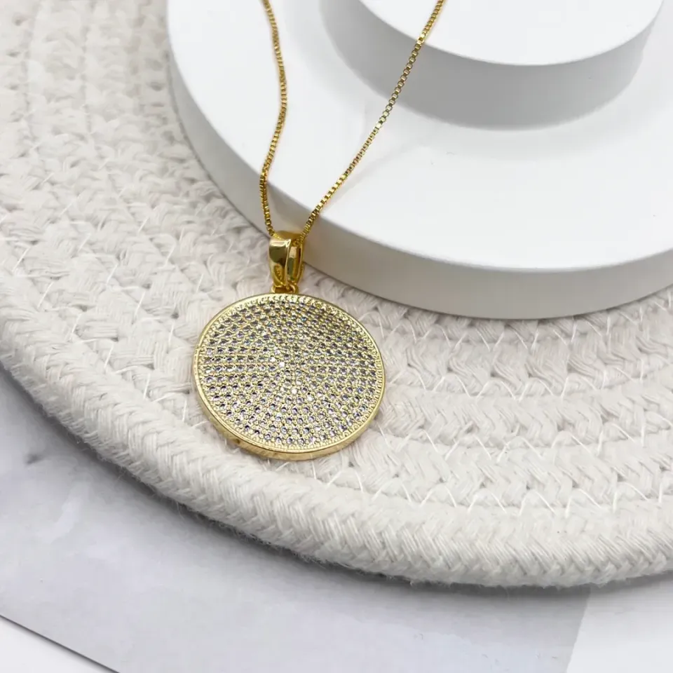 COLAR PINGENTE REDONDO DE MICRO ZIRCONIASConfira opiniões e avaliações de clientes!