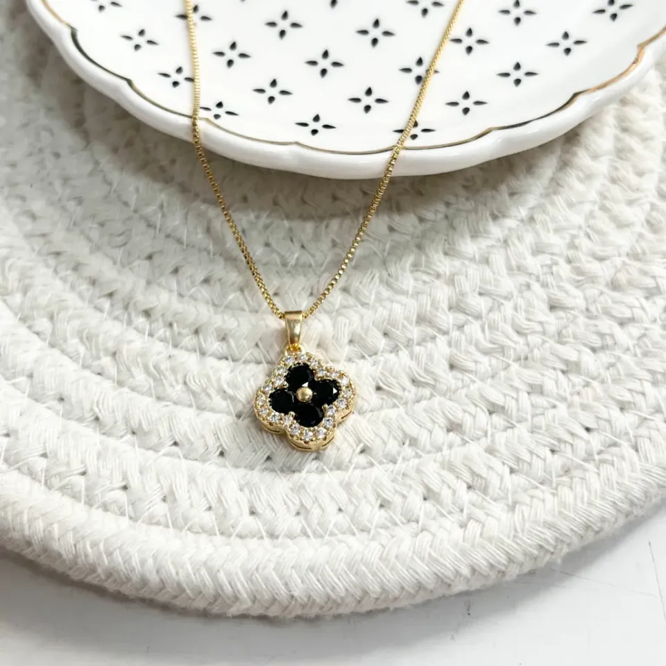COLAR TREVO ZIRCONIAS E PEDRA PRETAConfira opiniões e avaliações de clientes!