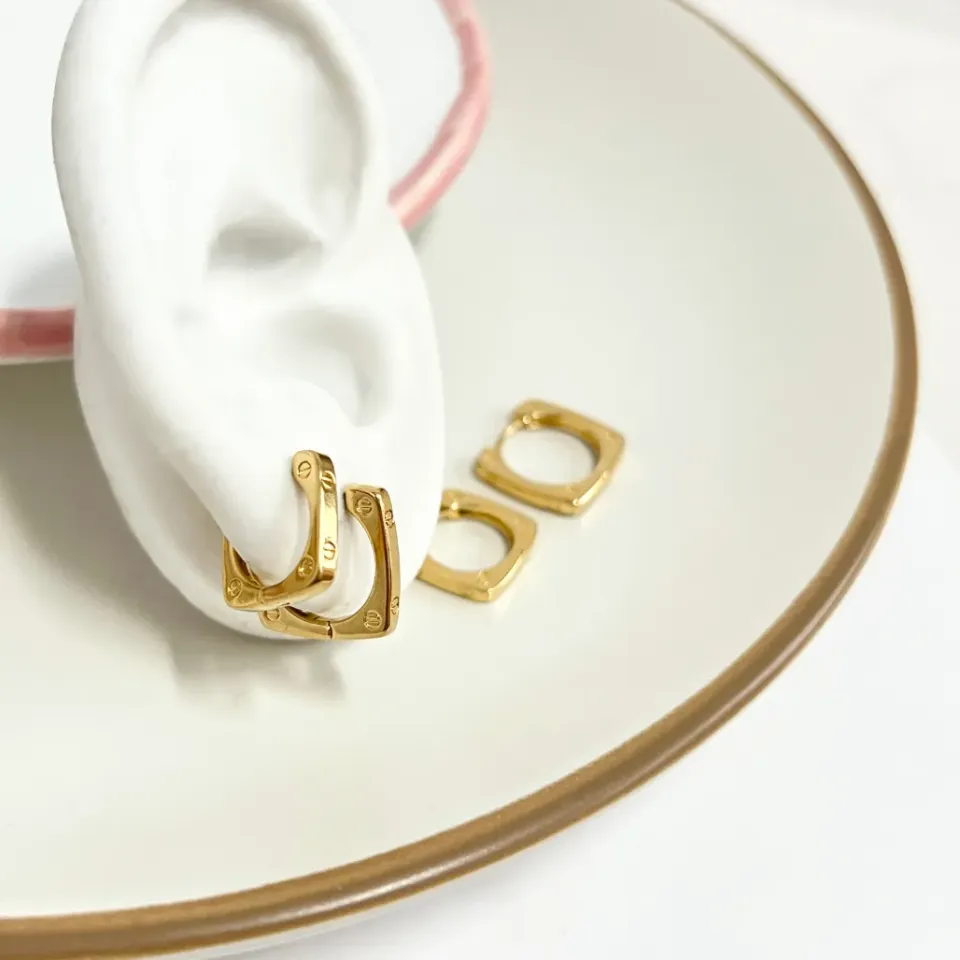 DUPLA ARGOLAS QUADRADAS COM DETALHE CARTIERConfira opiniões e avaliações de clientes!