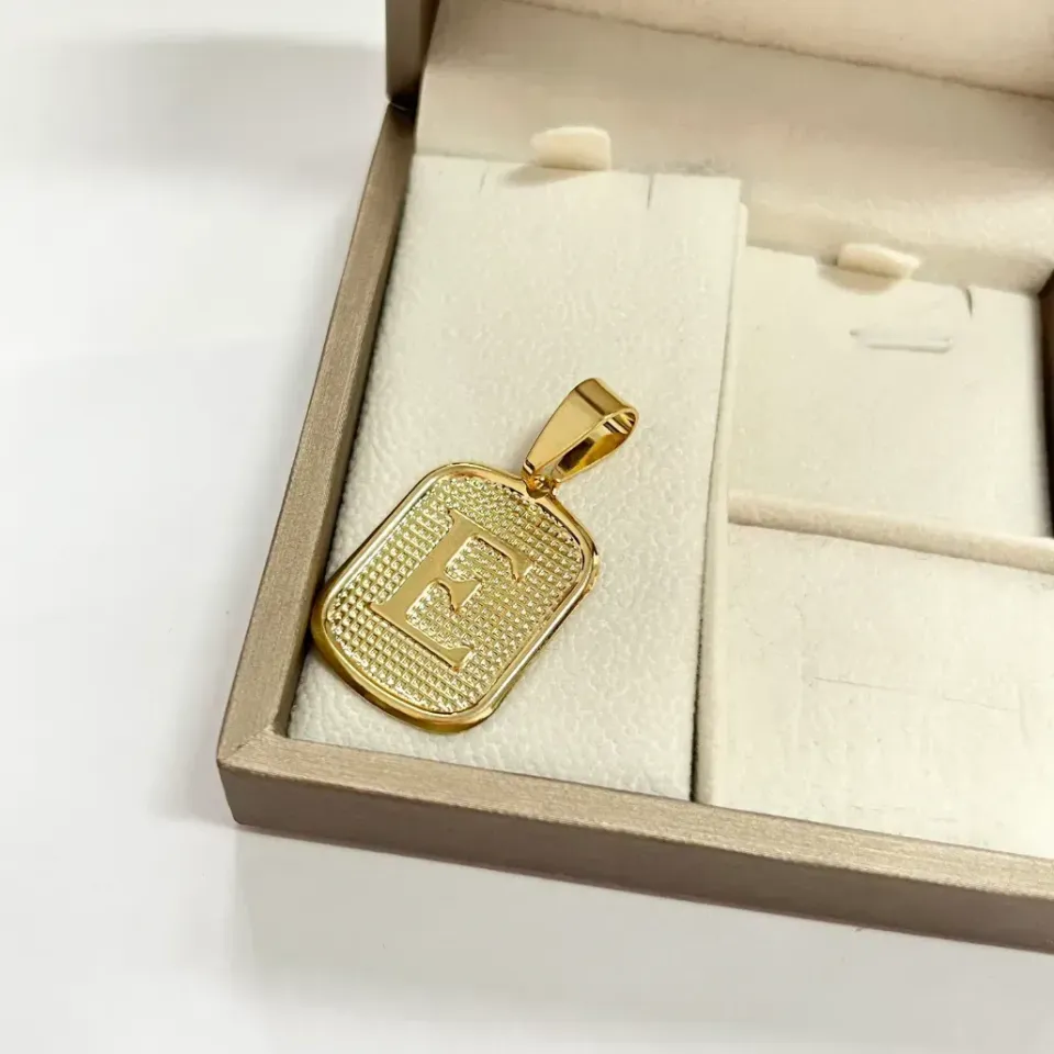 pingente medalha quadrada de letra