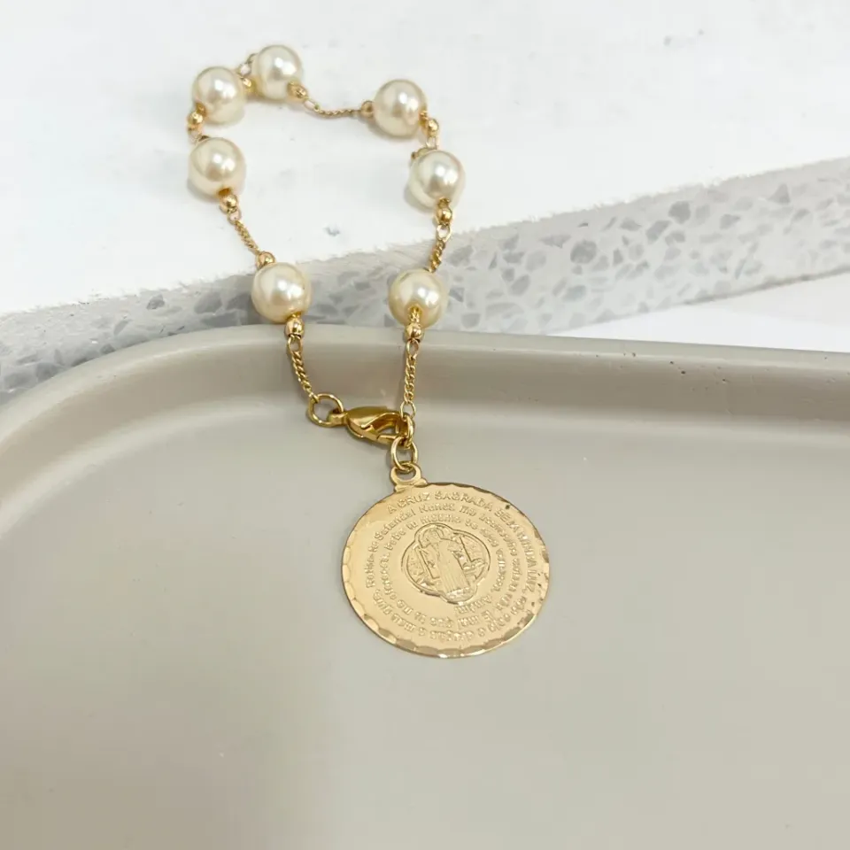PULSEIRA PÉROLAS COM MEDALHA ORAÇÃO SÃO BENTOConfira opiniões e avaliações de clientes!