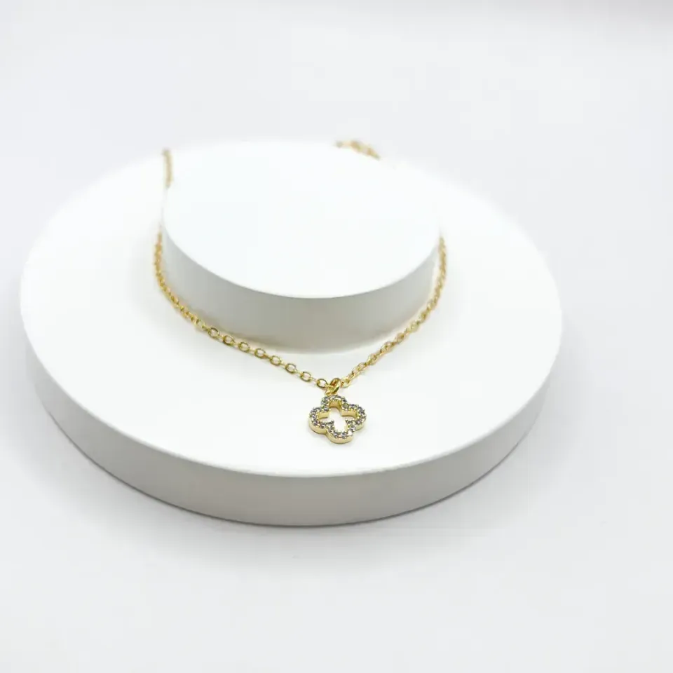 TORNOZELEIRA PINGENTE DE TREVO VAZADA E CRAVEJADOConfira opiniões e avaliações de clientes!