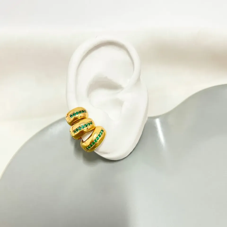 TRIO ARGOLA ARTICULADA COM ZIRCONIAS VERDEConfira opiniões e avaliações de clientes!